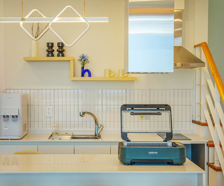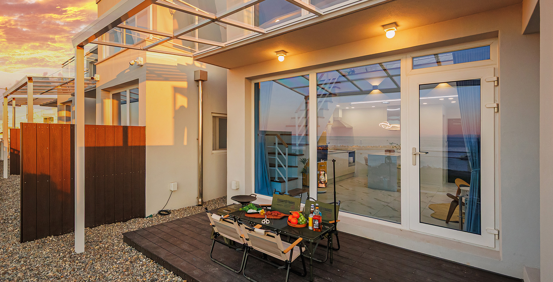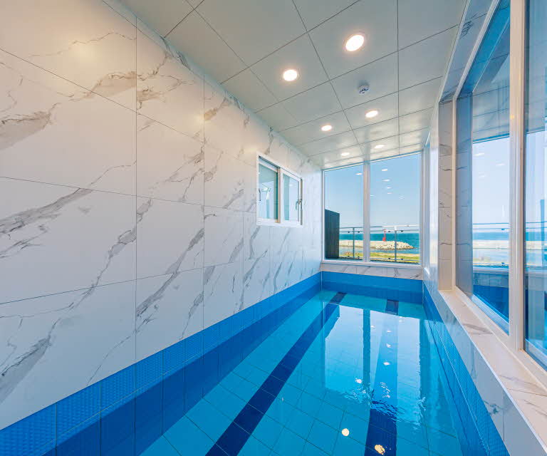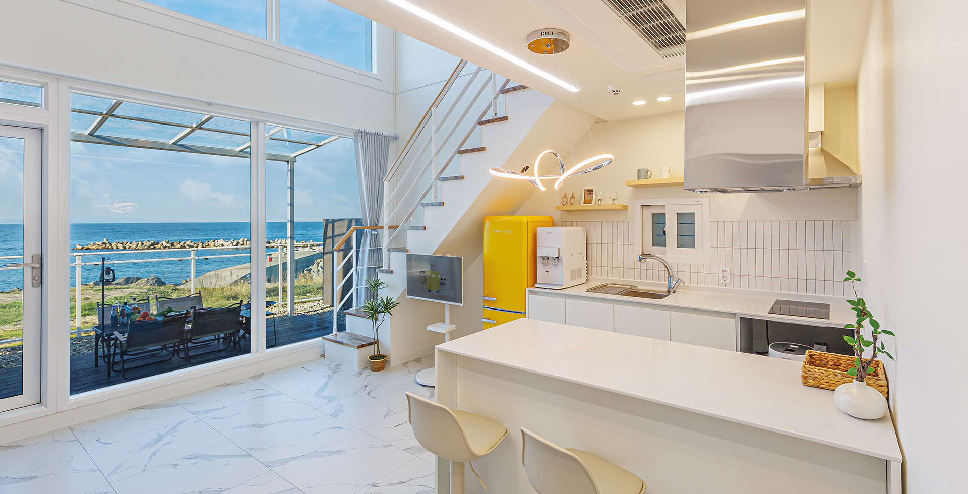 1층: 개별수영장 + 원룸형 거실/주방 + 테라스(바비큐) + 화장실(비데)+화장실