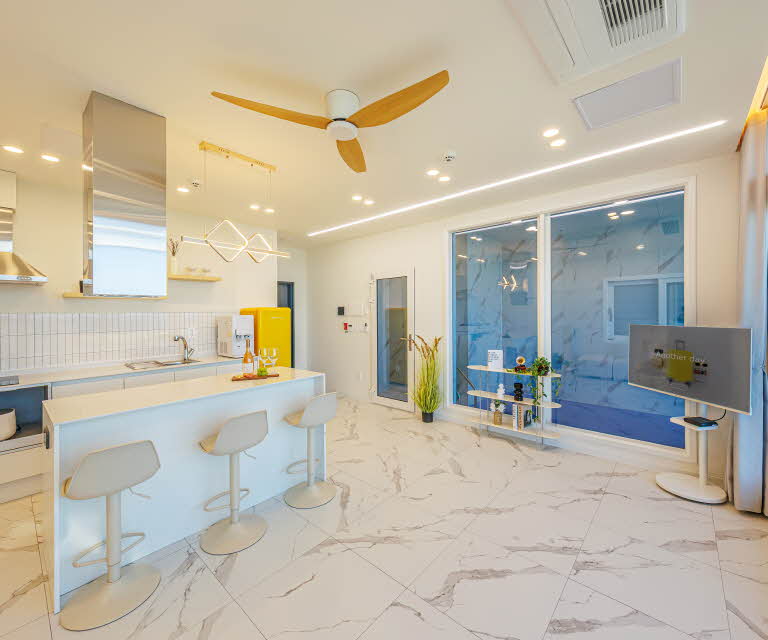 TV, 노래방기계, 에어컨, 냉장고, 전자레인지, 전기밥솥, 쇼파, 식탁, 드라이기, 정수기, 조리용품, 조리도구, 식기, 수건, 샤워용품(샴푸, 린스, 바디워시, 핸드워시Info.